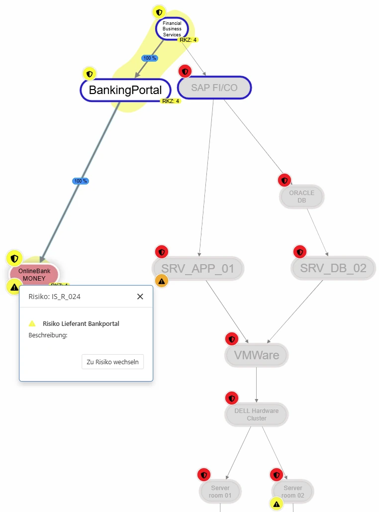 Risks are determined from the non-conformities of suppliers and their need for protection based on the services supplied and provided. The effects can be visualized.